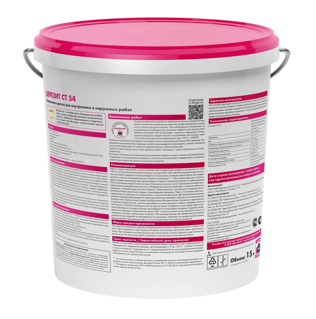 Описание товара: "Краска силикатная Ceresit CT54 водно-дисперсионная база (прозрачная) (15л )"