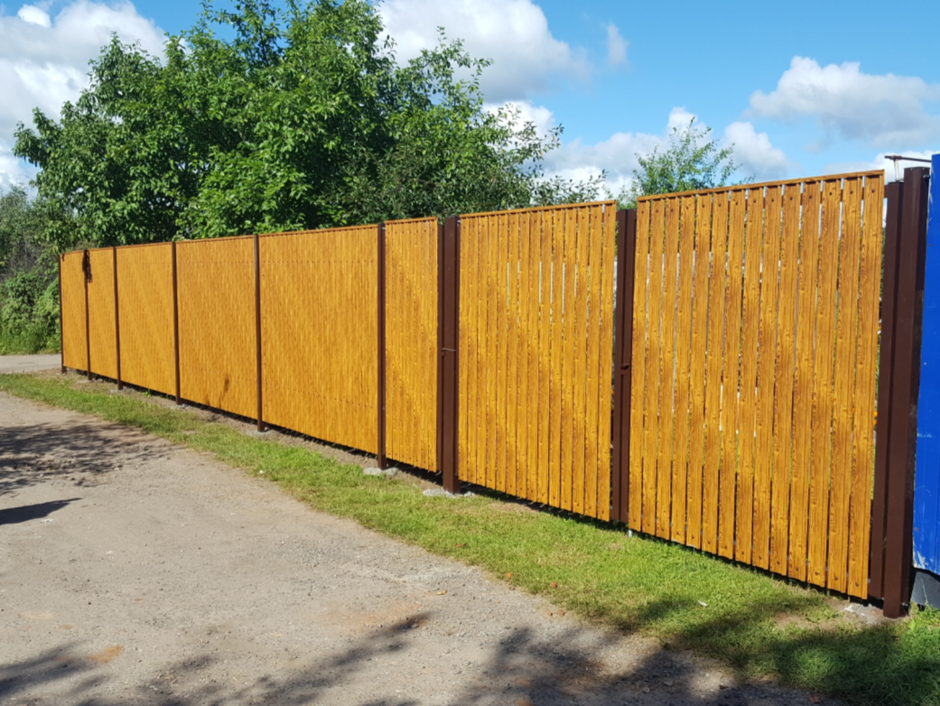 Металлический штакетник — это тип ограждения, состоящий из металлических панелей шириной 100–128 мм и имеющих различные варианты профиля.