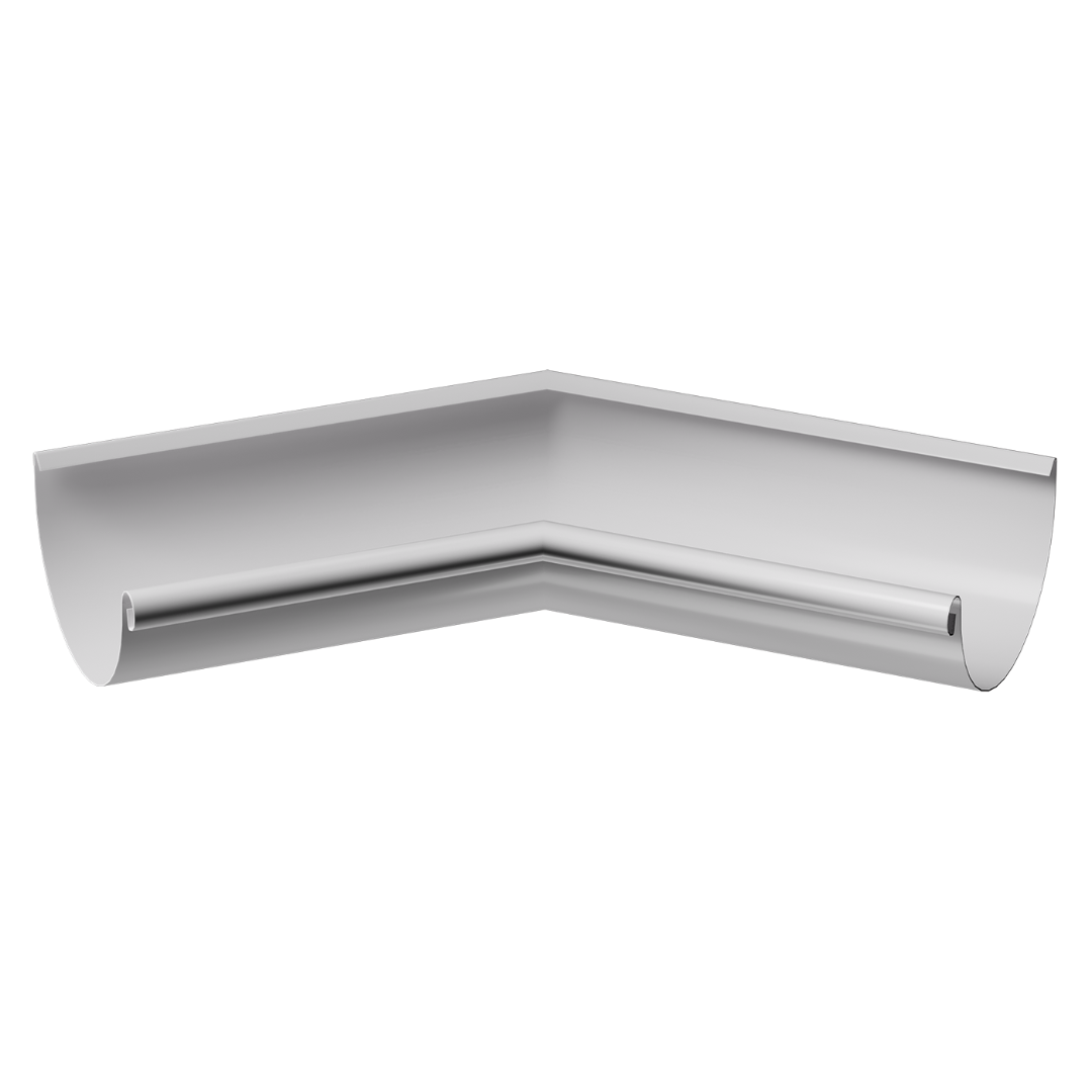 Металлические желоба «Stal Premium» можно соединить под углом 135 градусов только на внутренних углах здания с помощью изделия внутренний угол желоба 135˚.